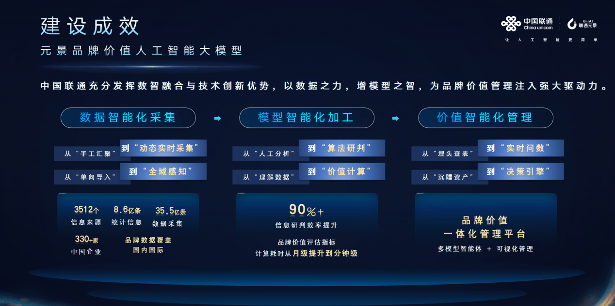 汇聚了35.5亿条的品牌数据,智能归因——全面展示企业阶段性的品牌表示,全面提拔办理效率取决策智能。增模子之智,依托中国联通数智融合、自从立异的经验,